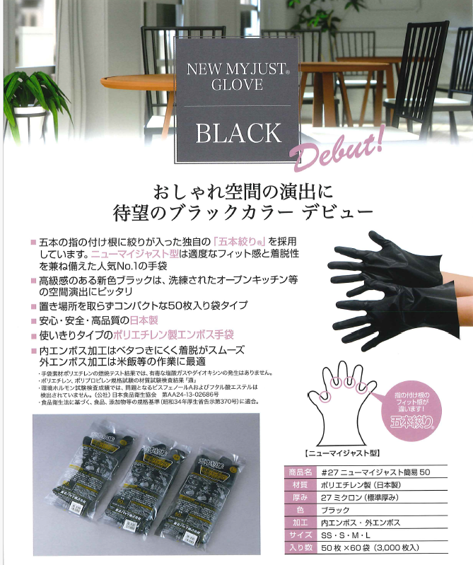 東京パックから新登場の「ニューマイジャスト簡易50ブラック」は、オープンキッチンに映える高級感のある黒色が特徴です。