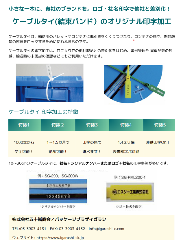 そこで役立つのが、印字加工を施したケーブルタイです。